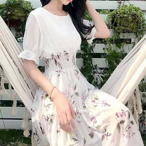 [신상오픈런]여성 보헤미안 스타일 셔링 플레어 쉬폰 투피스
