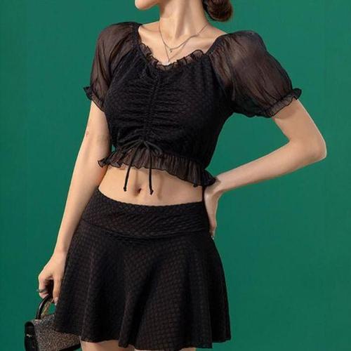 [에이치플러스몰]로맨틱 퍼프 쉬폰 미들 스트링 투피스 수영복 모노키