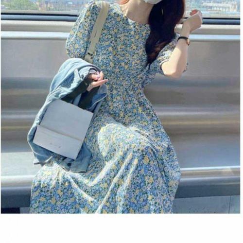 [디작소][sale] 빈티지 플라워 쉬폰 소매 원피스 슬림핏
