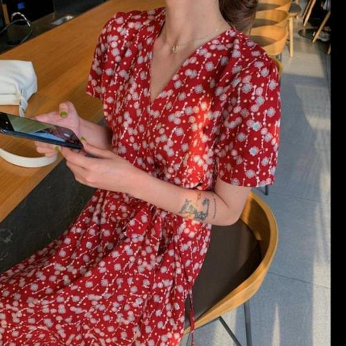 여름 원피스 플라워 반팔 휴양지 여성 롱 원피스 쉬폰