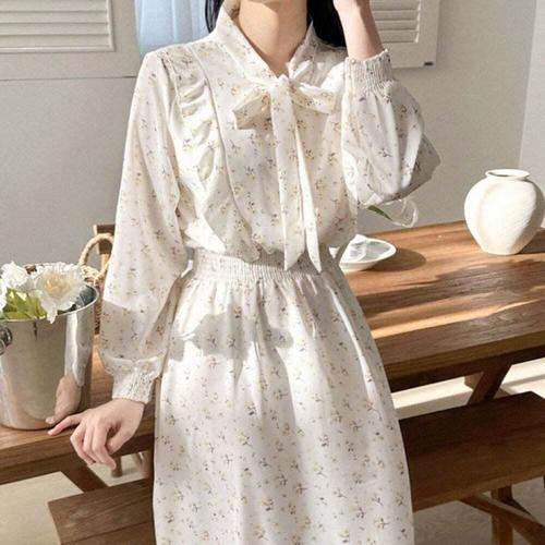 [오너클랜]인기상품 잔꽃 쉬폰 롱 원피스 블라우스 긴팔 스모크 스타일 여성 데일리웨어 [WFLKRHM_260303]
