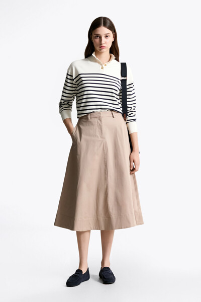 코튼 플레어 미디 스커트
