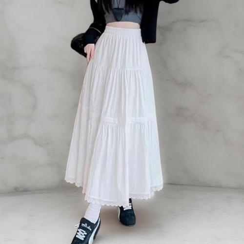 [옷자락]여성 러블리 화이트 레이어드 플레어 롱 스커트