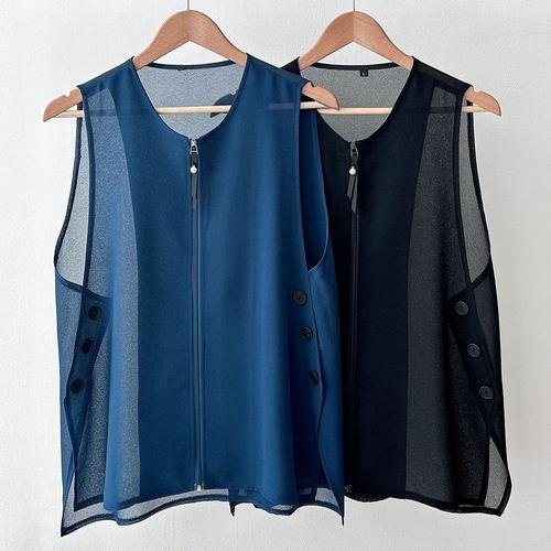 [VY] 여성 얇은 마담 단추 SS 집업 시폰 비침 조끼