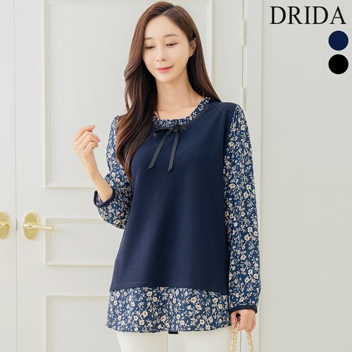 드리다 여성 봄 가을 플라워 패턴 빅사이즈 쉬폰 스판 티 블라우스 40-50대 미시 중년여성 엄마옷 하객