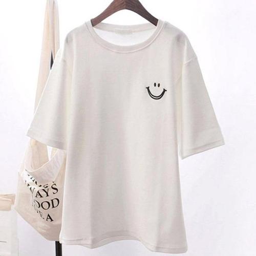 귀여운 스마일 마크 포인트 데일리 편한 여성 반팔티