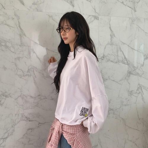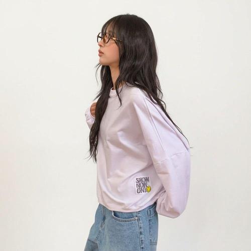 [미라클세븐]여성 스마일 디자인 루즈핏 긴팔 라운드 티셔츠