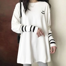 엘쏘 여성용 스마일 시보리 긴팔 롱 티셔츠