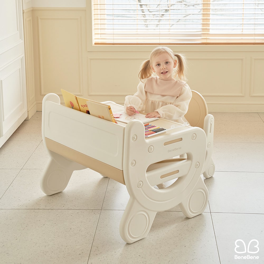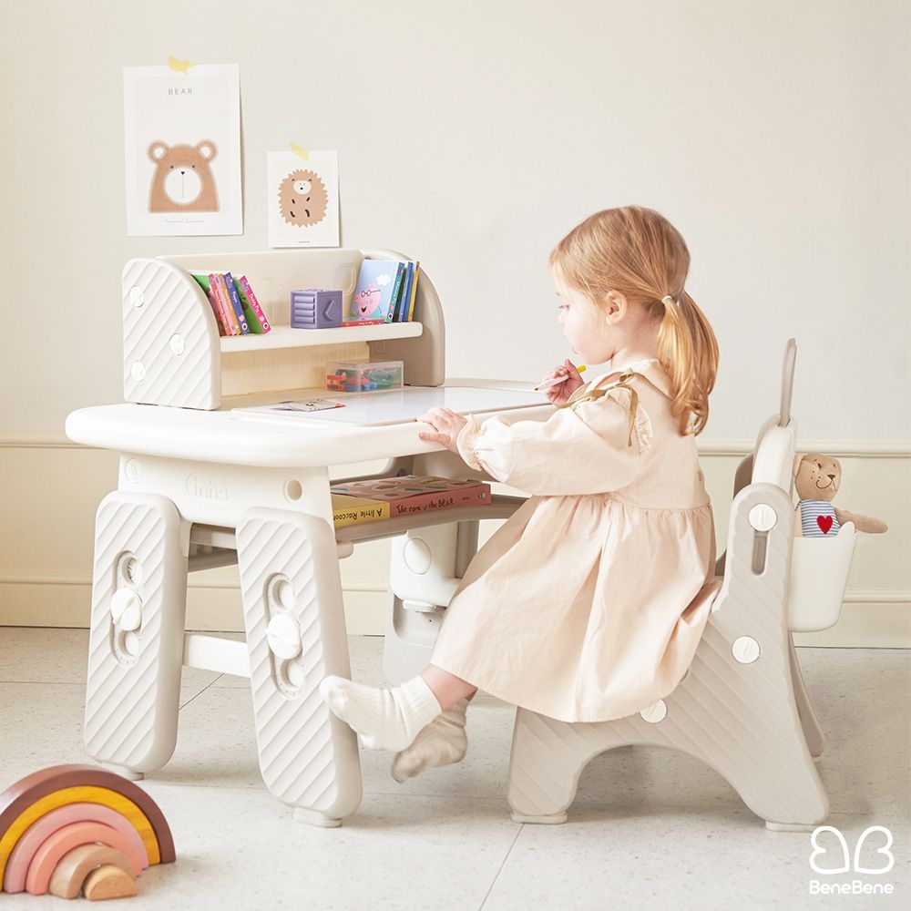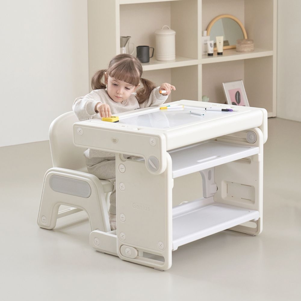 쁘띠 래빗 유아 아기 4단계 높이 조절 보드 책상 의자 세트 테이블