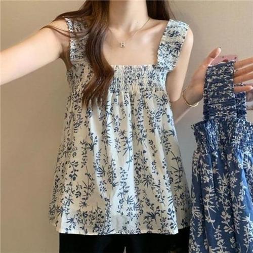 [엄지척]데일리 여성 꽃무늬 가슴 스모크 밴딩 나시_19644800_667501