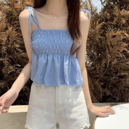 [신상오픈런]|CMT33A5|에벨리 프릴장식 짧은 여성 잔골지 스모크 티셔츠 썸머 끈나시_18157159_597559