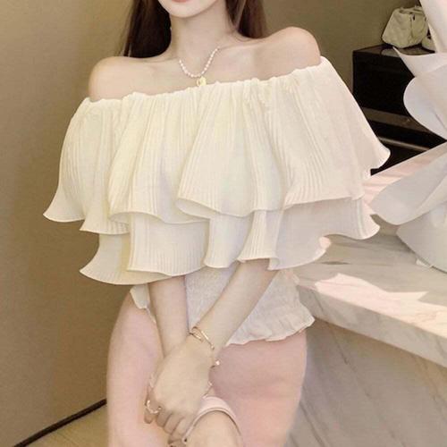 [모노무드]모노무드 플리츠 프릴 넥 밴딩 스모크밴딩 오프숄더 블라우스
