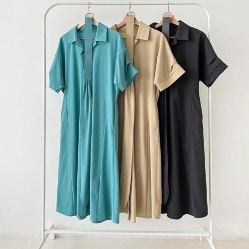 [신상오픈런]|CSO384D|치크라 카라 숏슬리브 스모크 여성 긴원피스 벨트_18171118_597559