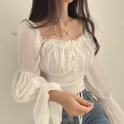 [엄지척]여성 우아한 레이스 셔링 오프숄더 스모크 블라우스_19652016_667501