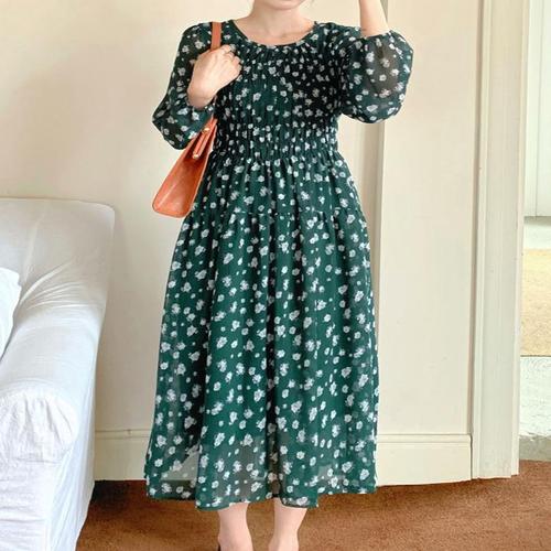 [셀러허브_여성트랜드패션]ONM 반팔원피스 여성 원피스 잔꽃무늬 스모크 밴딩 플