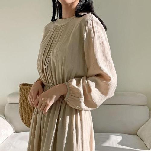 [신상오픈런]|KSO4632|른오베 주름디테일 긴원피스 캐주얼 플리츠 여성 볼륨 스모크_18170473_597559