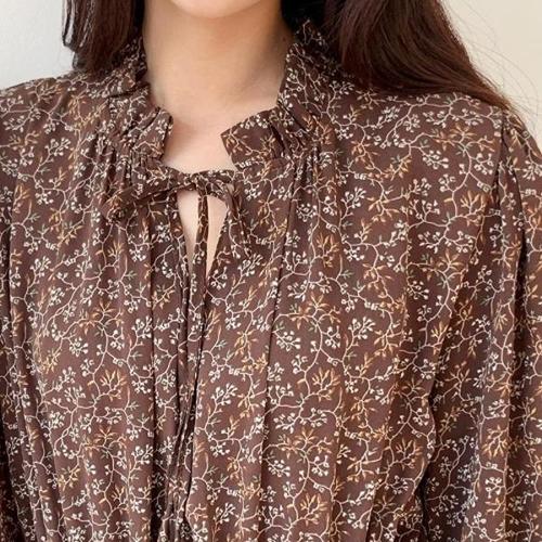 [신상오픈런]|CDO4093|레란브 프릴장식 매듭 슬리브 원피스 스모크 여성 꽃 긴_18169380_597559