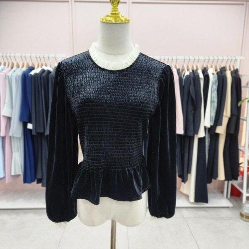 [엘렌느] 퀸 벨벳 기모 레이스 스모킹 티블라우스 4종