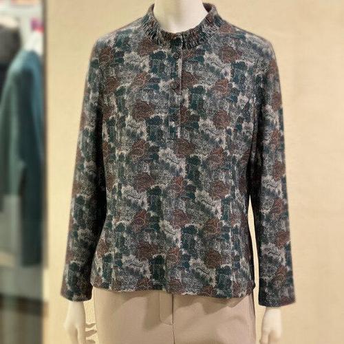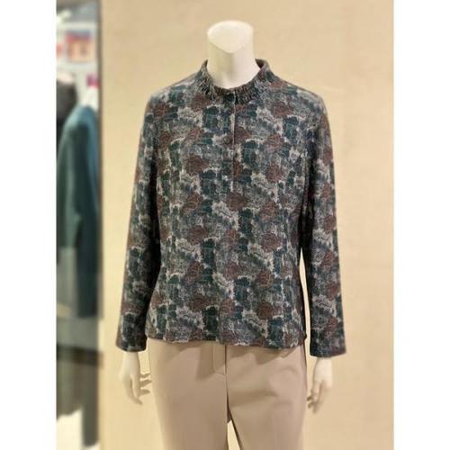 [비지트인뉴욕]프린트 패턴 스모킹 셔링 칼라 블라우스(VZ7SS3C)