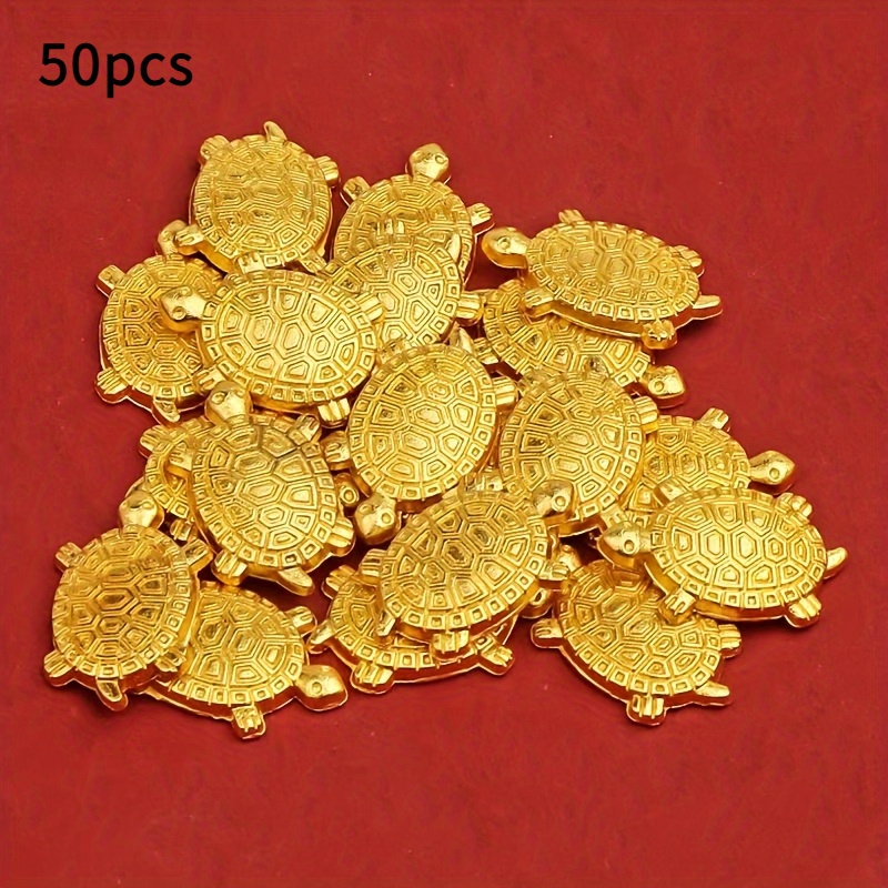 TEMU 50개 골든 행운 거북이 풍수 부가 거북이 메탈 바다 거북이 참지갑 부적 사무실 장식 복수 부가 비즈니스 선물 집들이 선물 수제 조각 영적 주얼리
