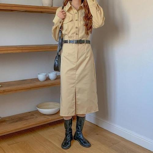 [다잇템][다잇템] 여성 스트랩 주머니 베이직 롱 남방 카라넥 원피스_23517694_588872