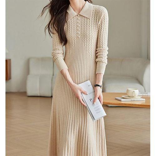 [패션시그널]펄버튼라인 카라넥 니트 롱 원피스 4AABD5