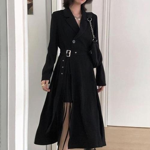 [다잇템][다잇템] 여성 치마 베이직 혁대 슬릿 롱 카라넥 원피스_23740533_588872
