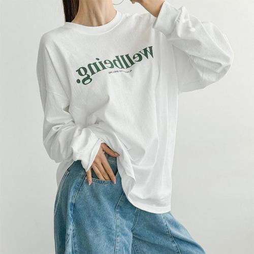 옷자락 / 여자 롱티 힙커버 박스 오버핏 레터링 롱슬리브 티셔