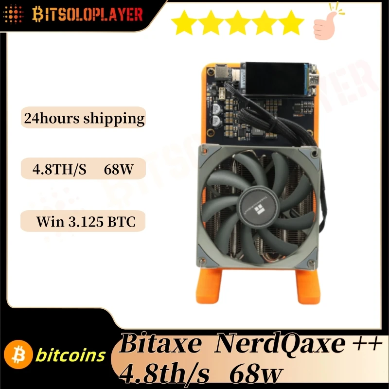 새로운 Bitaxe NerdQaxe++ 4.8TH/s 68w 비트코인 광부 4개 BM1370 Asic 칩 솔로 BTC 광부(120W 전원 공급 장치 포함)