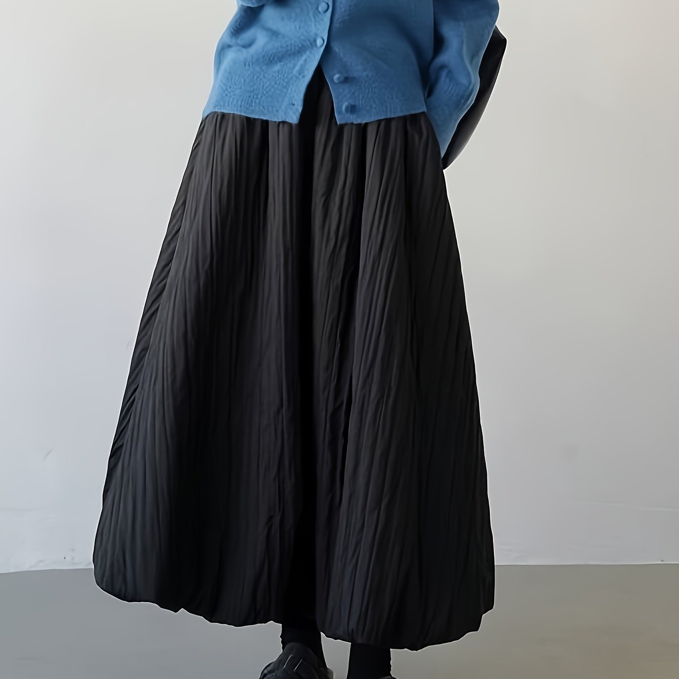TEMU 여성용 우아한 비대칭 주름 미디 스커트 - 하이웨이스트, 투톤 블랙 & 화이트, 폴리에스터 쉬폰, 세탁기 사용 가능, 가을/겨울 패션에 완벽