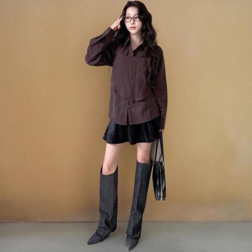 여자 단추 롱스카프 출근룩 빅사이즈 블라우스