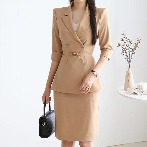 [모리스커밍홈]턴업 7부소매 벨트자켓 스커트 3종세트_M2408SE112C