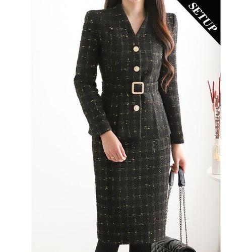[모리스커밍홈]골드믹스 페플럼 벨트자켓 스커트 3종세트_M2410SE164D