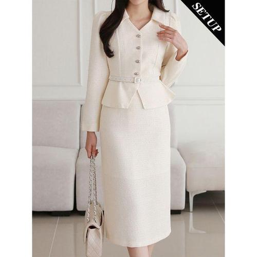 [모리스커밍홈]럭셔리 퍼프 카라 벨트자켓 스커트 3종세트_M2410SE165D