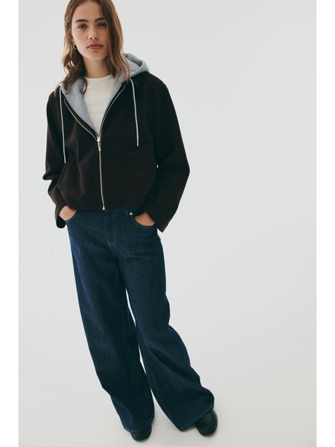 TEMU 여성 캐주얼 지퍼 후드 - 따뜻한 플리스 안감, 긴 소매, 드롭 숄더 디자인, 캥거루 포켓, 단색 갈색, 가을/겨울에 완벽