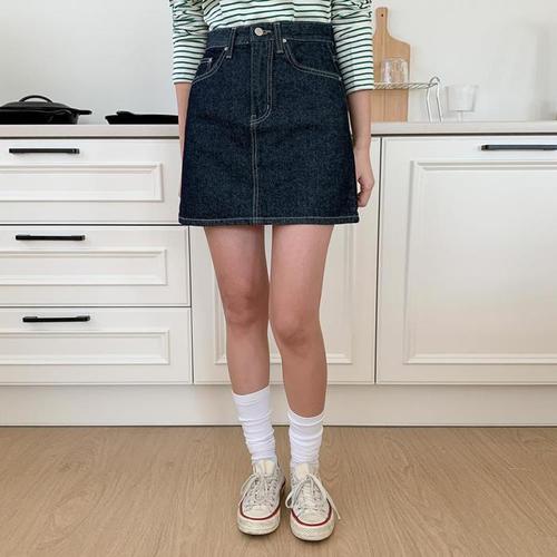 [옷자락] 여자 봄 데일리 스쿨룩 생지 스티치 심플 데님 스커트