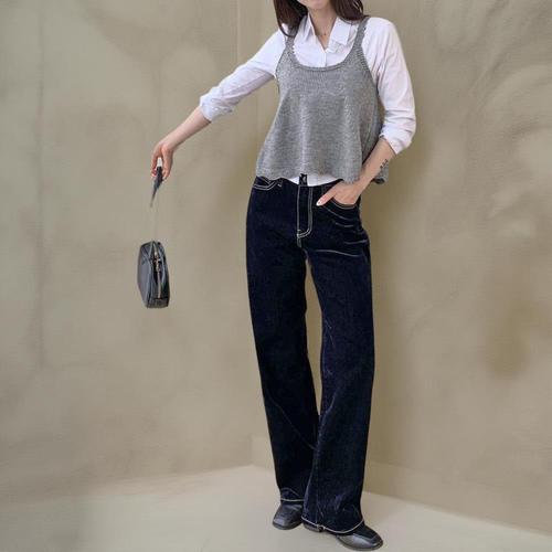 [르포엠]엘리 스퀘어넥 슬리브리스 니트탑 3종세트