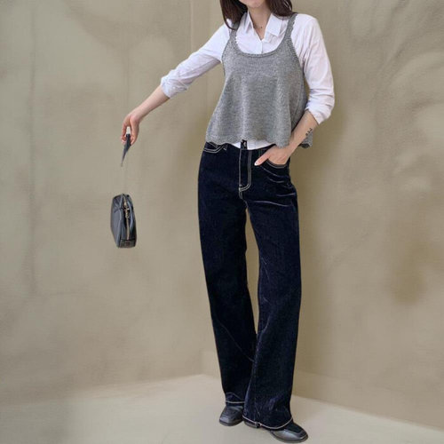 [옷자락]여성 면 캐시미어 스퀘어넥 A라인 민소매 니트