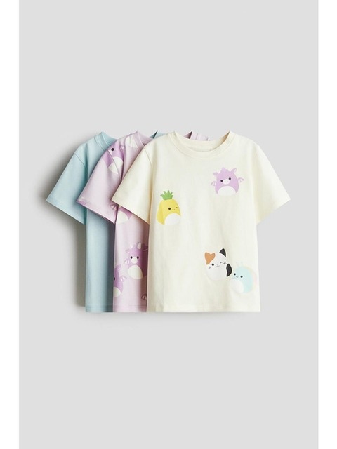 [에이치엔엠] 프린트 저지 탑 3장 세트 크림/스퀴시멜로우 0937175073