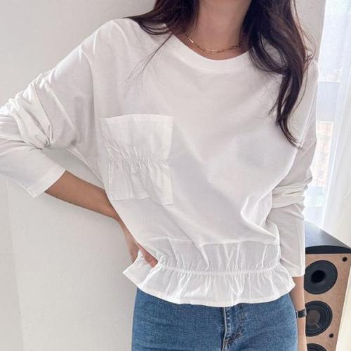 [하젤]스퀴즈 셔링 포켓 라운드 면티셔츠_S3848