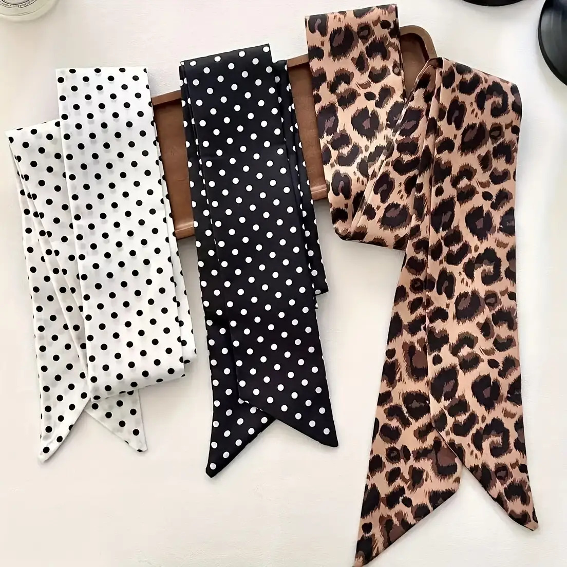 TEMU & 도트 여성용 롱 스카프 3pcs - 빈티지 핫, 가방 랩, 헤어밴드, 벨트, 패션 액세서리, 다재다능한 스타일링,의상 강화제,스타일리시 프린트,부드러운 소재,내구성 있는 직물,헤어밴드 랩,레트로 애호가