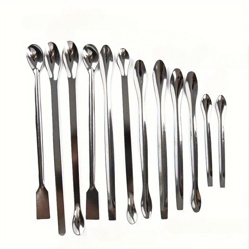 TEMU 12개 스테인리스 스틸 실험용 스푼 세트 - 실험실 샘플링 및 혼합을 위한 튼튼한 조리기구, 스푼자 포함 - 과학적 사용에 적합