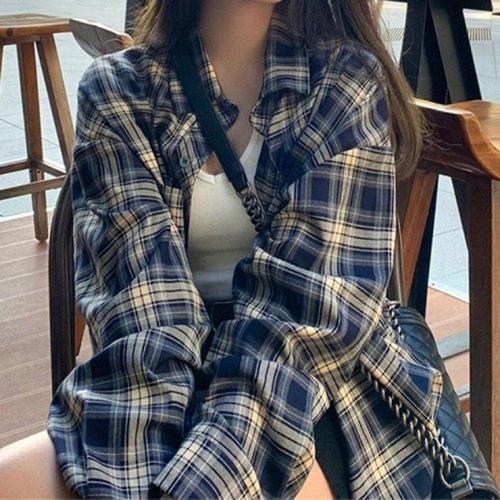 [오너클랜]인기상품 가을용 여성용 체크패턴 오버핏 긴팔 캐주얼 셔츠 루즈핏 스타일 [WFLHI36_260207]