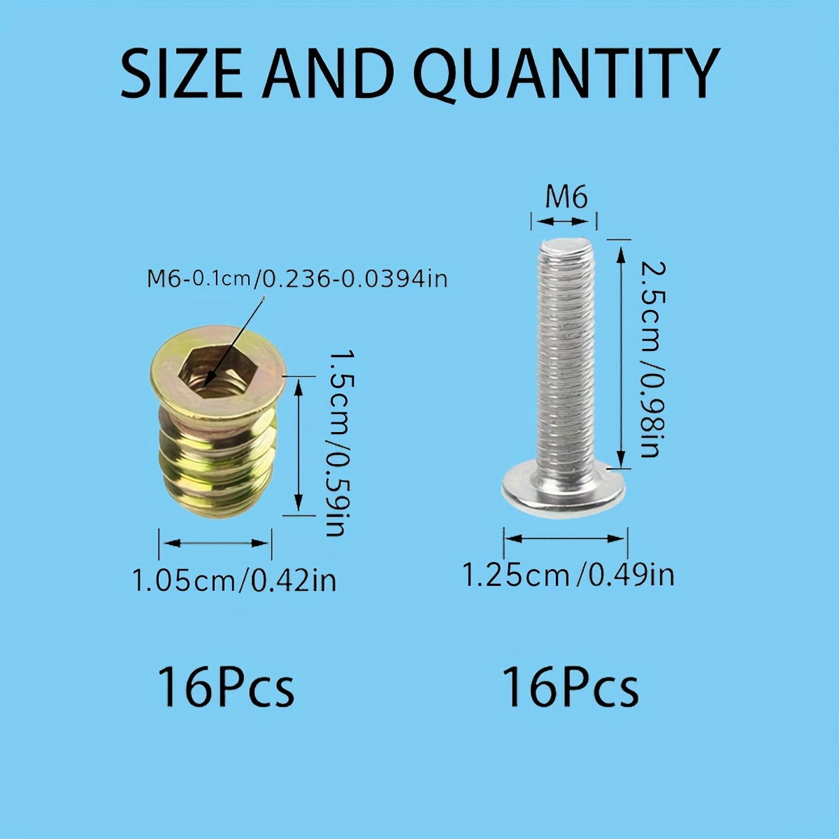 TEMU 16개 세트 가구 나사 너트 세트 304 스테인리스 스틸 나사 나사 나사 육각 소켓 드라이브 방실 및 방지 가구/캐비닛/DIY 설치 액세서리