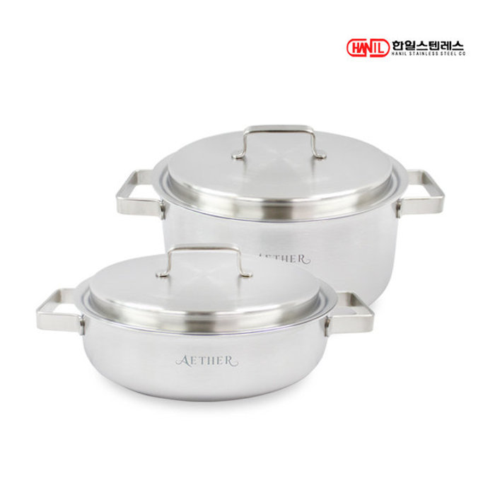 한일스텐레스 한일STS 에테르 통5중 스텐레스304 IH 인덕션가능 무연마제 냄비세트 2종F(양24+전24)