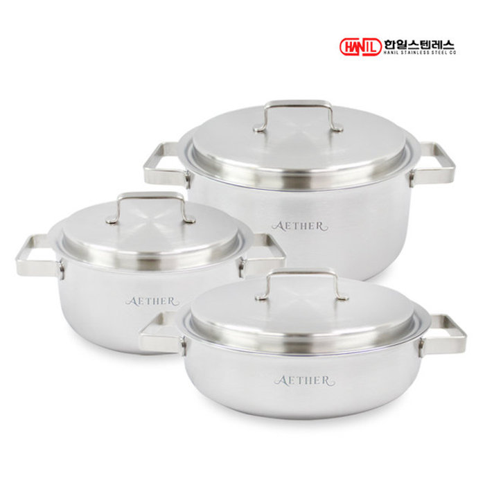 한일스텐레스 한일STS 에테르 통5중 스텐레스304 IH 인덕션가능 무연마제 냄비세트 3종D(양20+24+전24)