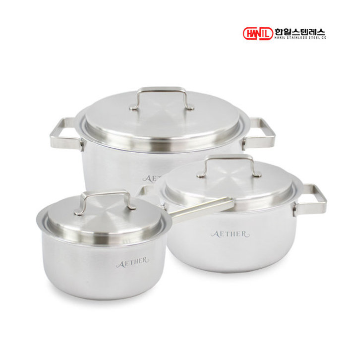 한일스텐레스 한일STS 에테르 통5중 스텐레스304 IH 인덕션가능 무연마제 냄비세트 3종A(편18+양20+24)