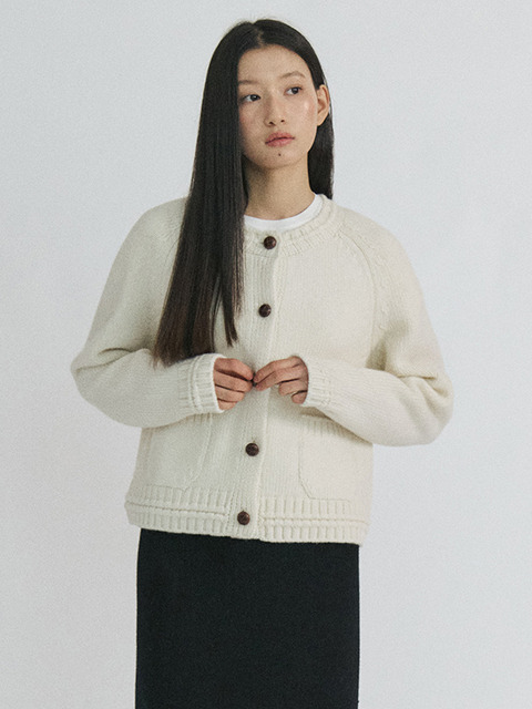 [스텝어라운드] Rib line raglan cardigan_IVORY