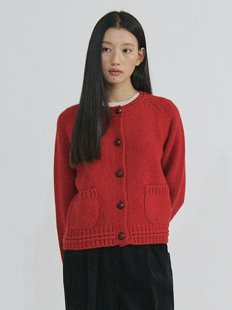 [스텝어라운드] Cashmere whole garment round cardigan_RED