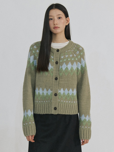 [스텝어라운드] 노르딕 클래식 울 가디건_올리브
